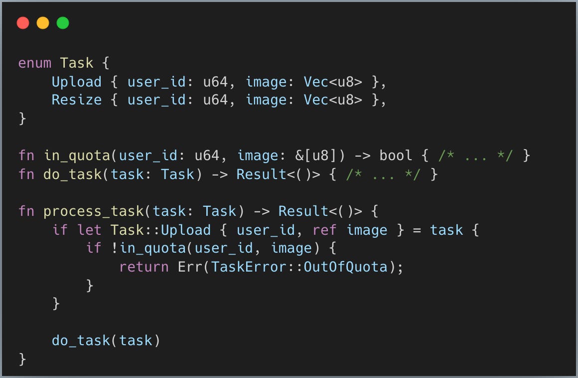 In this example, we move user_id (cheap to copy) but borrow image (potentially large) for the quota check, and keep task intact for passing to do_task later.
