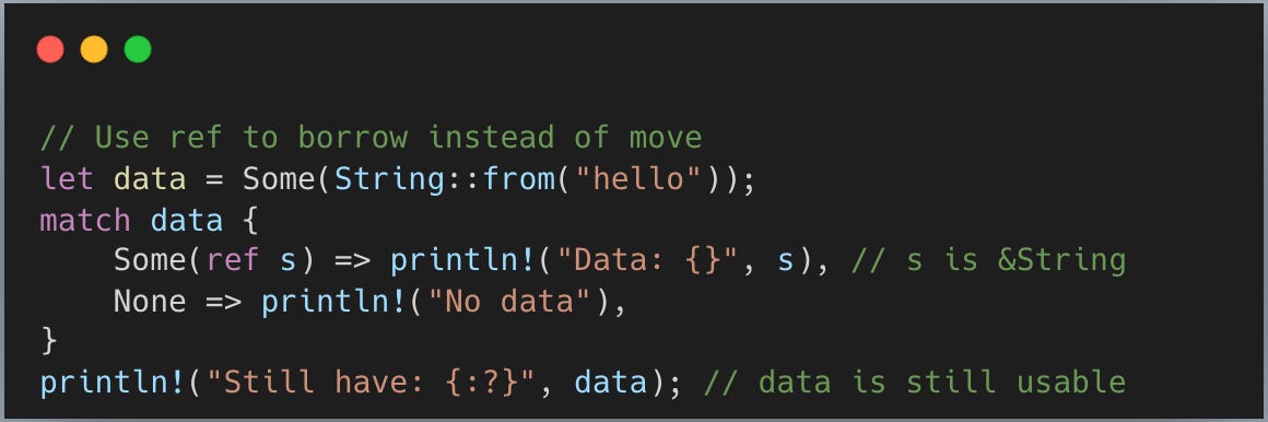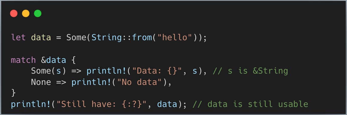 Notice the match is on &data, Rust automatically borrows the inner fields for you.